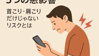 姿勢と身体の使い方 スマホ姿勢が体に与える5つの悪影響|首こり・肩こりだけじゃないリスクとは スマホを長時間見ていると、首や肩がこる…だけではありません。呼吸や目、睡眠にまで影響する“スマホ姿勢の落とし穴”と、体を守るための工夫を紹介します。 2025.09.19 姿勢と身体の使い方