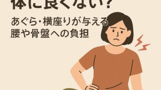 姿勢と身体の使い方 床に座る生活は体に良くない?|あぐら・横座りが与える腰や骨盤への負担 畳や座卓の生活で床に座る時間が長いと、腰や骨盤に負担がかかりやすくなります。あぐらや横座りの姿勢による影響と、体にやさしい座り方の工夫を解説します。 2025.09.23 姿勢と身体の使い方