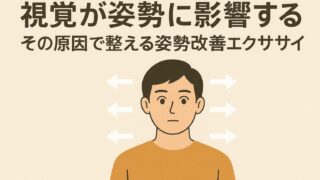 姿勢と身体の使い方 視覚が姿勢に影響する?|眼球運動で整える姿勢改善エクササイズ 姿勢が崩れる原因は、筋力やクセだけではありません。実は“視覚”も大きく関係しています。この記事では、視覚と姿勢の関係性と、簡単にできる眼球運動エクササイズを解説します。 2025.10.03 姿勢と身体の使い方