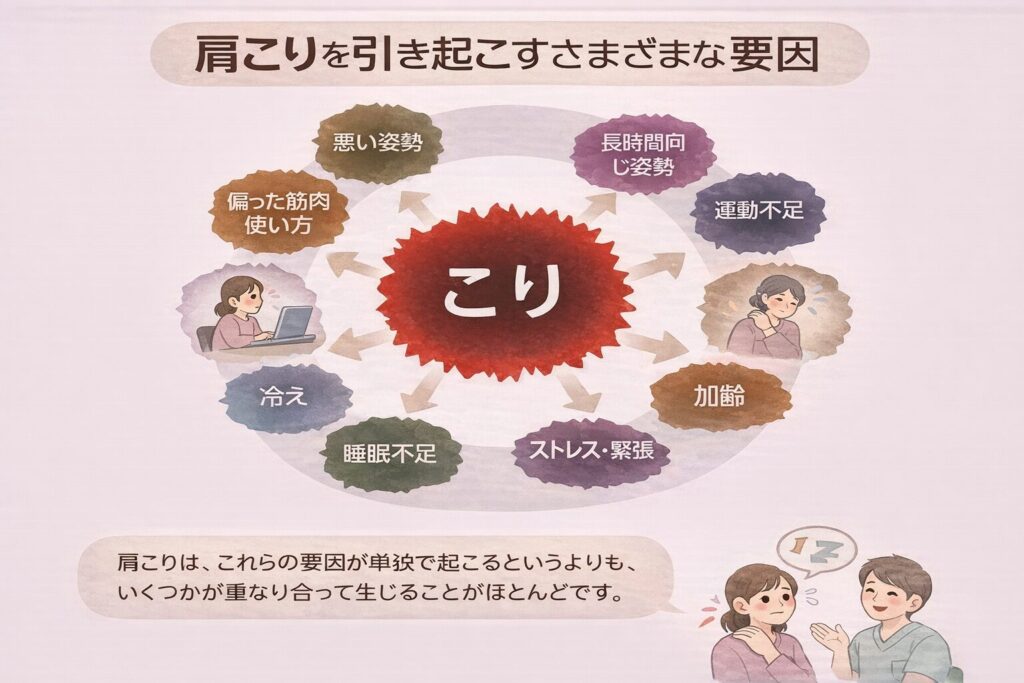 肩こりの原因を一言で表すことはできません。