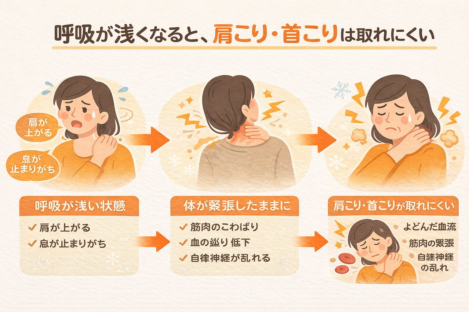 呼吸と肩こり・首こりは、実はとても深い関係があります。