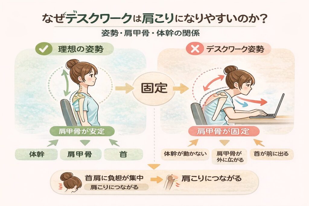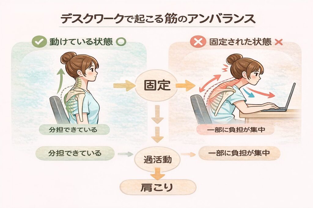 肩こりは、この「動かなさ」から始まることが多いのです。