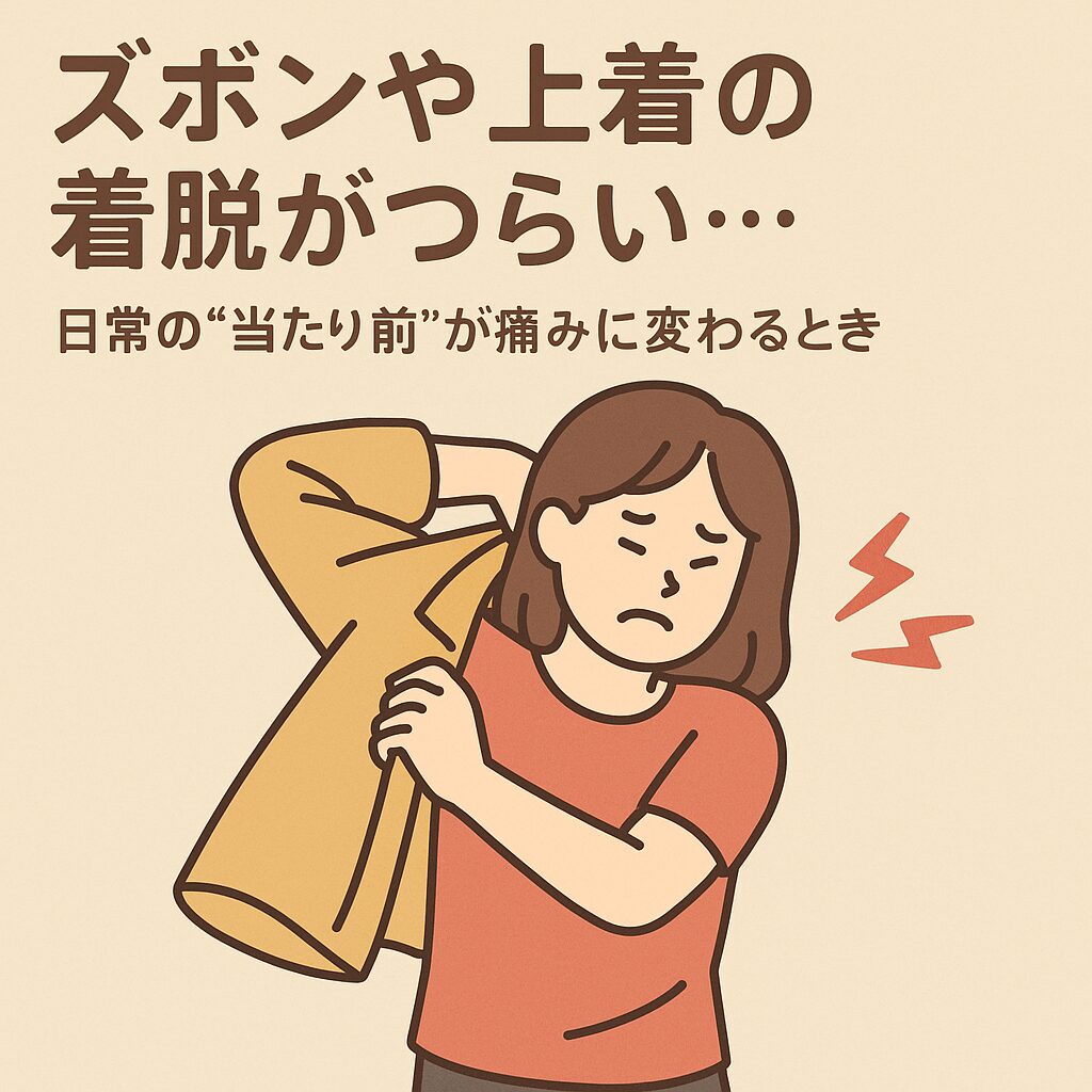 特に肩関節に問題を抱えている方にとって、衣服の着脱は思った以上に難しい動作です。