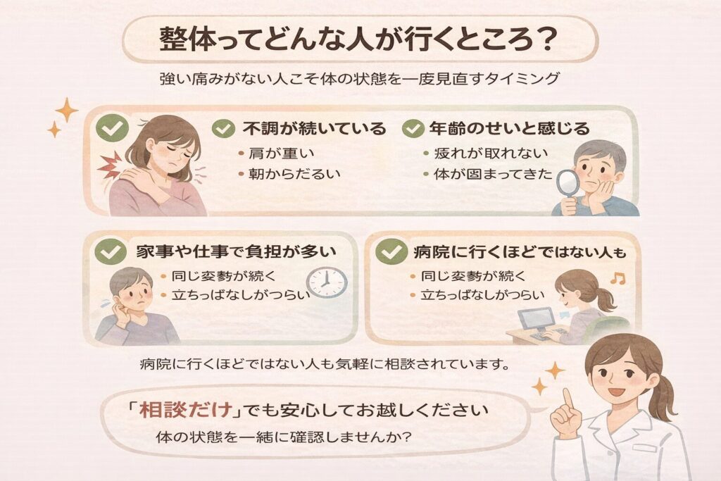 整体ってどんな人が行くところ?|実際に多い相談内容と来院のきっかけ