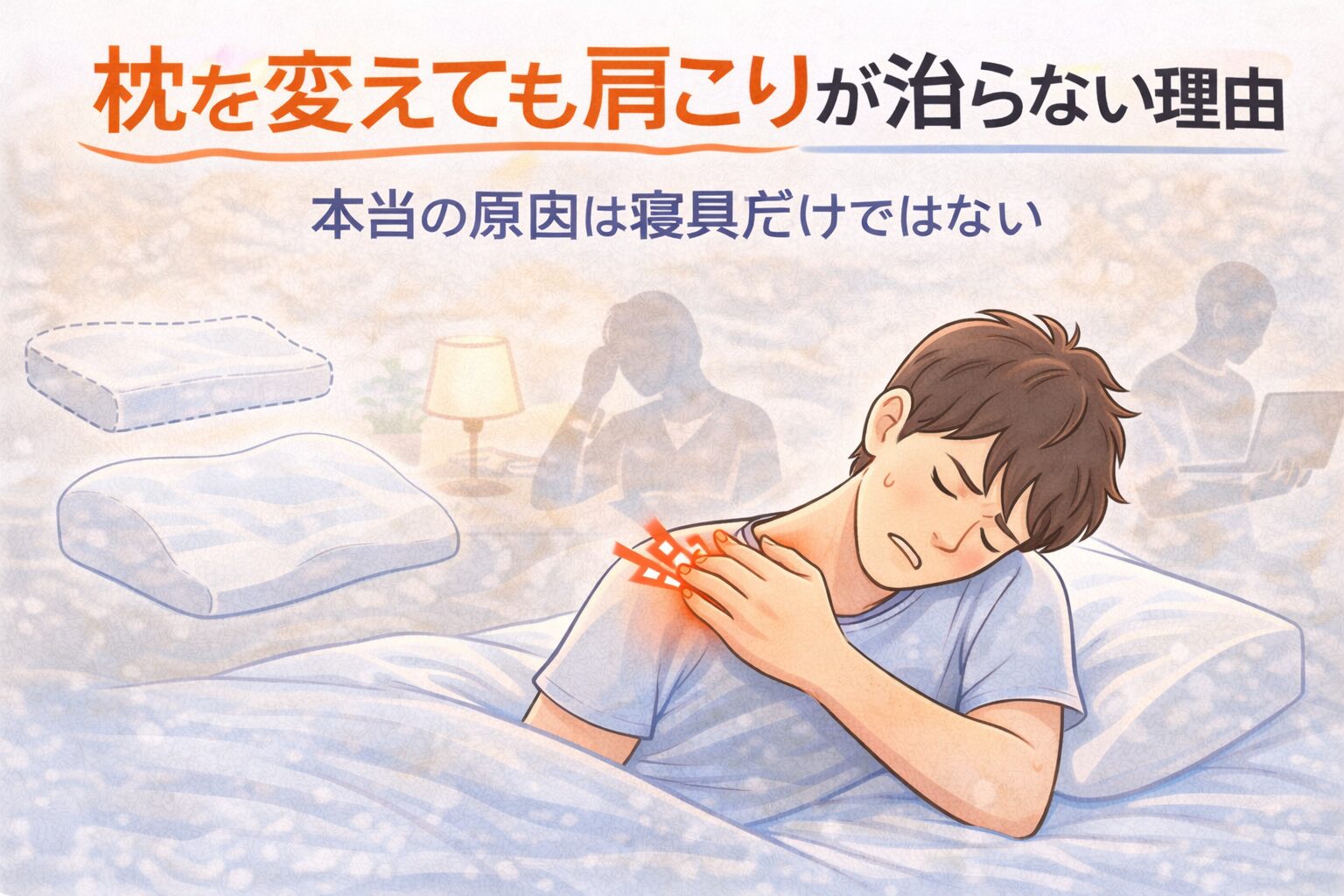 枕は睡眠中の体を支える大切な道具ですが、肩こりの原因はそれだけではありません。