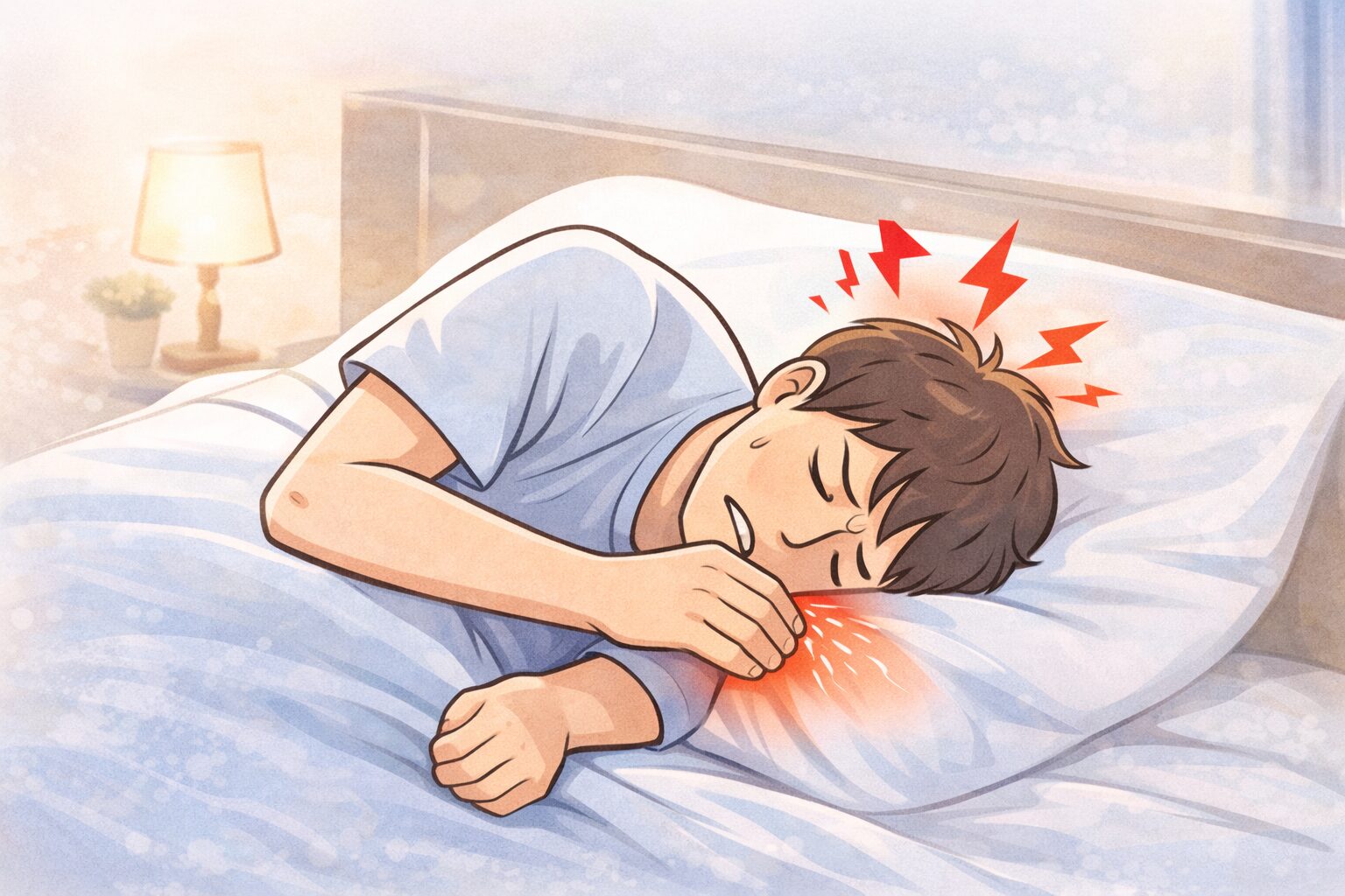 その結果、夜寝ている間も肩がリラックスできず、朝の痛みにつながることがあります。