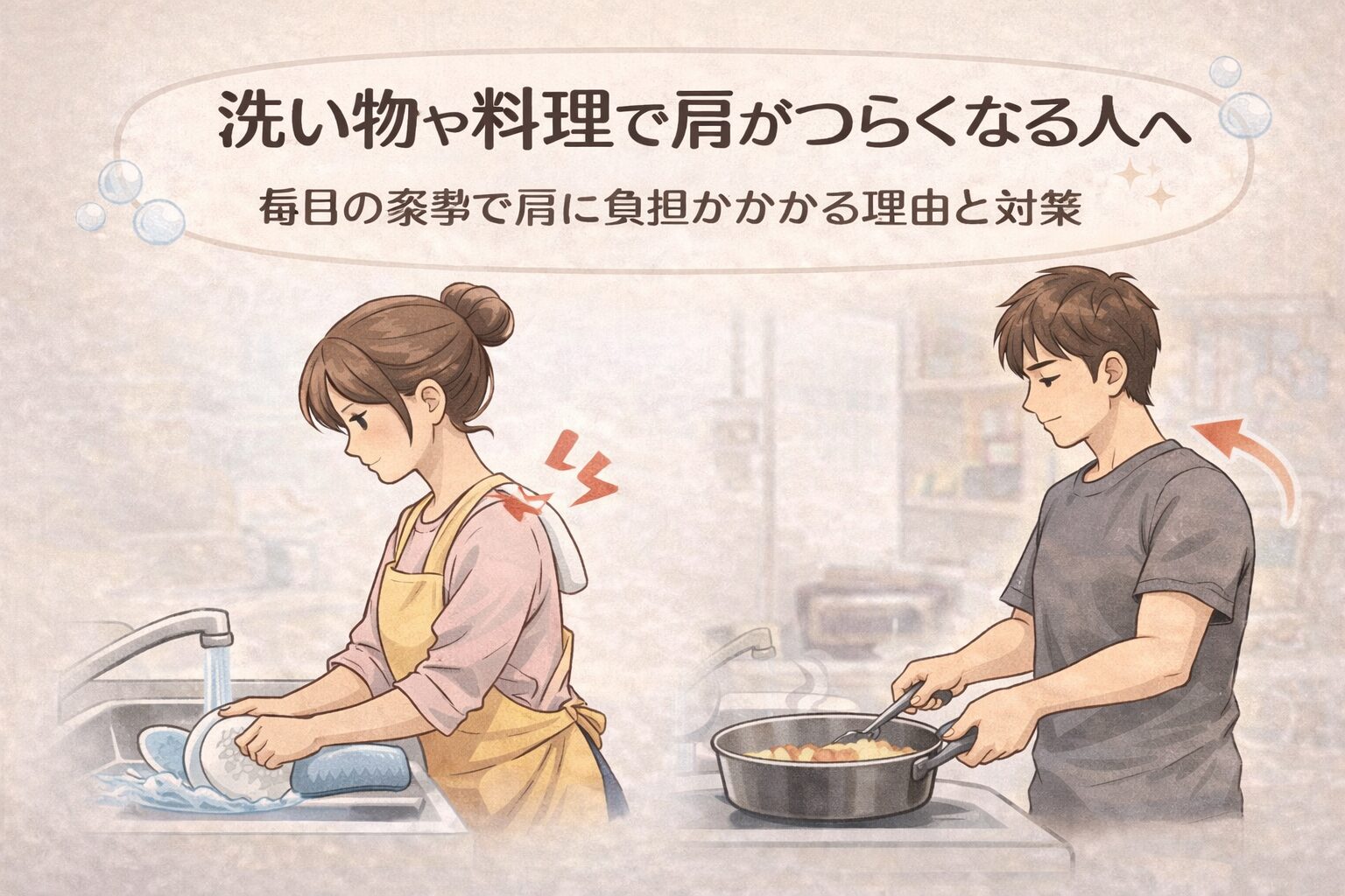 洗い物や料理で肩がつらくなること、ありませんか?