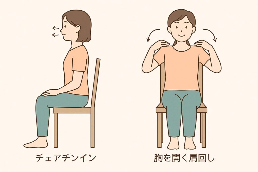 休憩中や自宅でできる、姿勢を整えるエクササイズを紹介します。