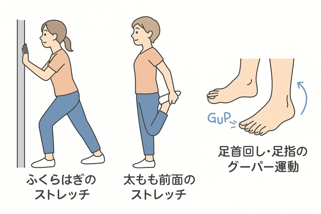 🔽 1. ふくらはぎのストレッチ(アキレス腱伸ばし)