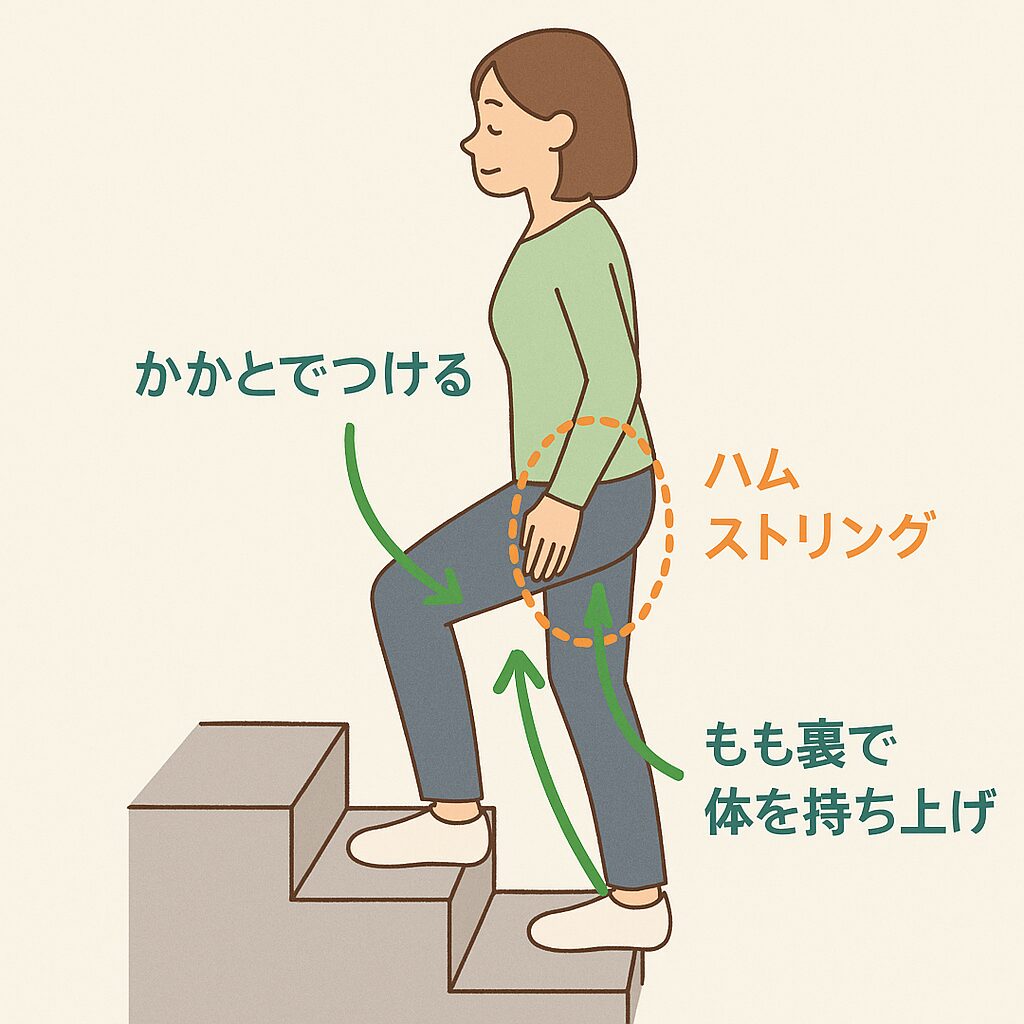 本来、階段をのぼるときには「もも裏(ハムストリング)やお尻の筋肉」も一緒に使いたいところ。