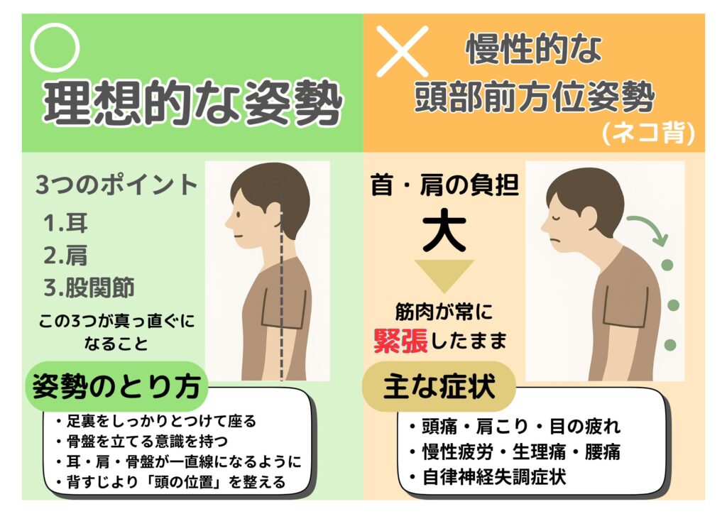 【見た目だけじゃない、首が前に出ることで起こる影響】