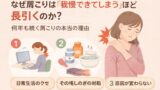 • ✔️ 肩や首の筋肉が緊張しやすくなる → 肩こり・首こりの原因に