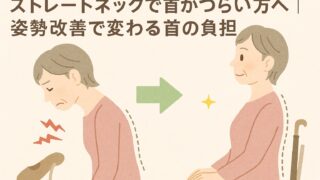姿勢と身体の使い方 ストレートネックで首がつらい方へ|姿勢改善で変わる首の負担 首が前に出た「ストレートネック」の姿勢がつらい方へ。首の痛みや疲れが取れない原因と、改善に向けて意識したい姿勢の整え方をわかりやすく解説します。 2025.09.10 姿勢と身体の使い方